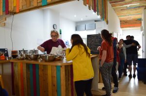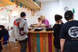 Some of the food we use is donated by local shops, when they have surplus food or when fresh food is past its sell by date. We also receive some donations from Fare Share, and we’re hoping to grow our own food in a new community garden. We check all the food we use is just as fresh and full of life as you’d expect from any other café.