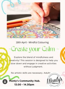 Nervous about starting new group? Come and meet me! Greta – the facilitator in @montyscommunityhub any Wednesday, Thursday or Friday (school hours) and have a chat